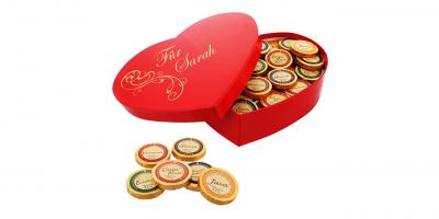 Diese elegante Herzbox überzeugt immer! Überraschen Sie Ihren geliebten Menschen mit dieser schönen Schoko-Herzbox, welche auf Wunsch personalisiert werden kann. Die rote Box ist prall gefüllt mit 6 erlesenen Sorten Schokogolddublonen aus Ländern wie Ecuador oder Costa Rica. Jede davon mit charakteristischem Geschmack.